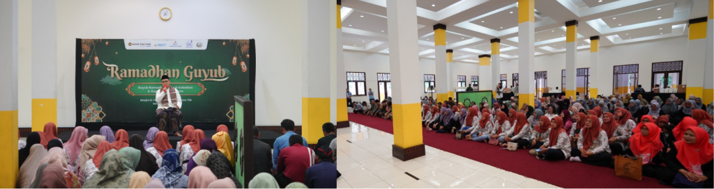 Mengusung tema “Guyub Ramadan, Guyub Kebaikan dan Guyub Kebersamaan”, kegiatan ini dilaksanakan di Aula Masjid Al Furqon UT, Jakarta. Lebih dari 300 warga masyarakat sekitar turut hadir dalam kegiatan ini, mulai dari kader Posyandu, Kelompok KATANA (Kampung Tangguh Bencana), komunitas Bank Sampah binaan, hingga jajaran pemerintahan setempat seperti Lurah Penggilingan, Cakung Barat, dan Rawa Terate. Selain menjadi wadah silaturahmi, kegiatan ini juga diisi dengan berbagai rangkaian aktivitas yang sarat nilai kebersamaan dan spiritualitas, seperti tilawah Al-Qur’an, kuis interaktif, kultum yang memberikan pesan-pesan inspiratif di bulan suci Ramadan, dan diakhiri dengan agenda buka puasa bersama.